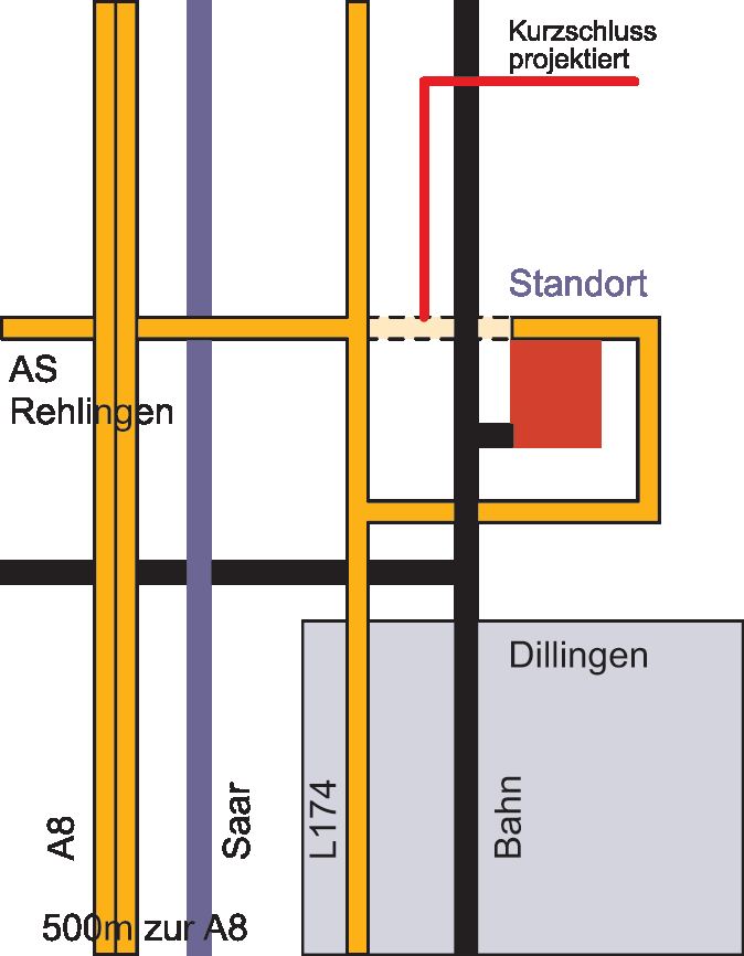 Das Grundstück ist eben und wird im Norden durch die Siemensstraße und im Westen durch die Dieselstraße begrenzt. Im Osten befindet sich der grundstückseigene Bahnanschluss mit Rampe.
